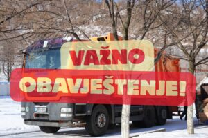 Poštovani korisnici, obavještavamo vas da se u skladu sa trenutnim mogućnostima vrši odvoz otpada, sa lokacija koje se očišćene od snijega. Trenutno velikih…